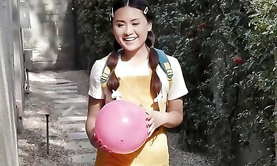 Teen Princess Ella Voneva Gets Her Asian Gash Rammed By Diamond Banks' Ginormous Strap On - LittleAsians FFM Threesome